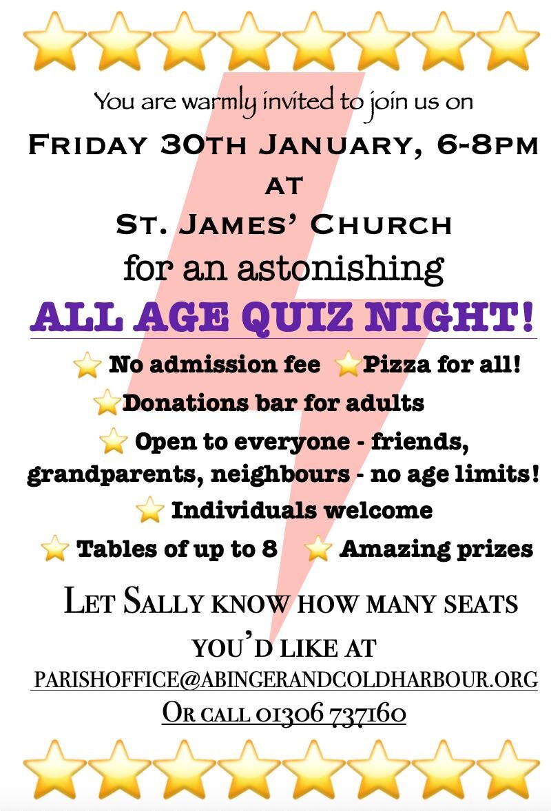 All-age quiz night 30th January 2026 6-8pm