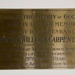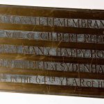 A brass on the south wall (organ chamber) beneath a lancet stained glass window. Not in Burial Register.