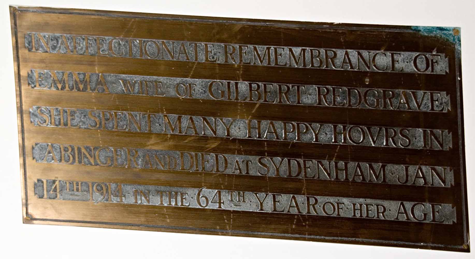 1828 The Rev J T Lawes AM formerly Rector of the Parish of Abinger left to John Evelyn Esqre his executors administrators and assigns £100 upon trust that he or they do invest the same in his or their own name or names in the public stocks or funds of Great Britain and upon trust that he or they do or shall once in every year for ever after his decease pay and apply the dividends and yearly proceeds there of unto such and so many of the poor industrious persons being Protestants and members of the Established Church resident in the parish of Abinger and at such manner as the said John Evelyn his executors &c with the assistance and advice of the Rectors of the said parish of Abinger for the time being shal think fit provided that the same be paid to such only of the said poor persons as shall not be receiving parochial allowance or in furnishing such comforts as cannot legally be supplied by the Parish officers. 1829 Rev H J Ridley AM Rector, Mrs Anne Evelyn relict of JNO Evelyn Esqre, Trustees; Mr William Baker, Mr Richard Johnson, Churchwardens.