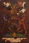 Brass plate in carved wooden frame at west end of north wall. Badly damaged 3 August 1944.