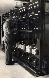The Second World War delayed the move from Abinger; the Magnetic Department eventually moved to Hartland Point, and the Abinger station ceased recording on 1st January 1957. About eighteen months before the outbreak of World War II it was decided to install a time system at the magnetic station at Abinger. Two Shortt clocks were transferred from Greenwich and two additional clocks were obtained. The GPO installed the necessary landlines and the installation was all in a blast proof building. Large aerials were set up on Leith Hill to receive radio time signals from the UK and overseas.